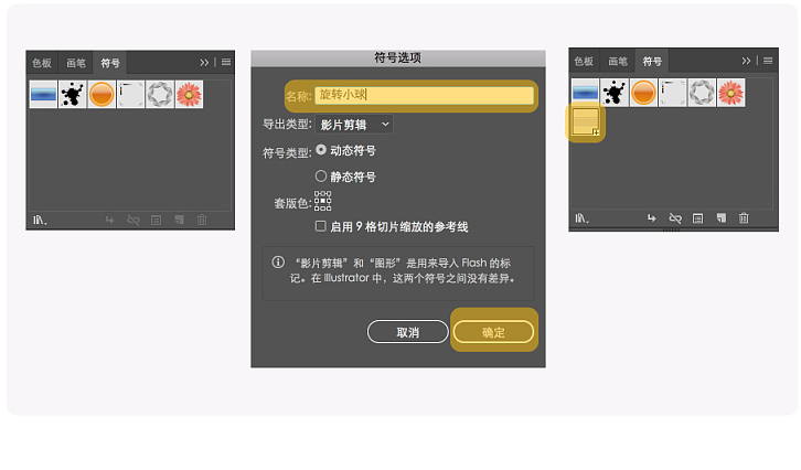 選中所有的形狀,吧圖接拖進(jìn)符號工具欄并點擊建立符號按鈕。