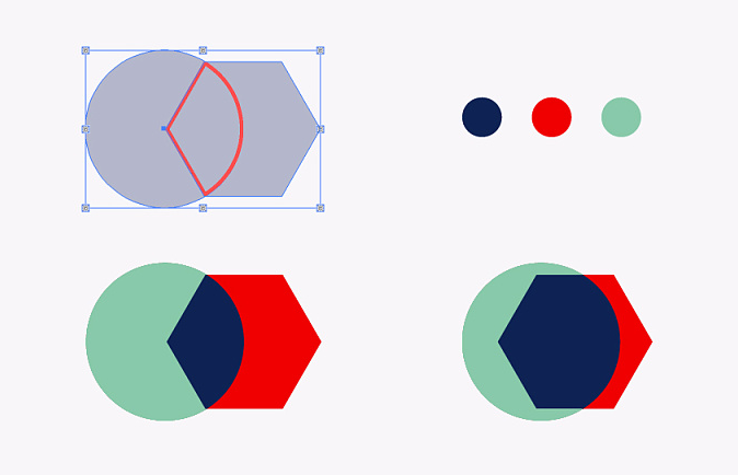 先畫兩個不同的形狀,把一部分給重疊一下建立一個色塊